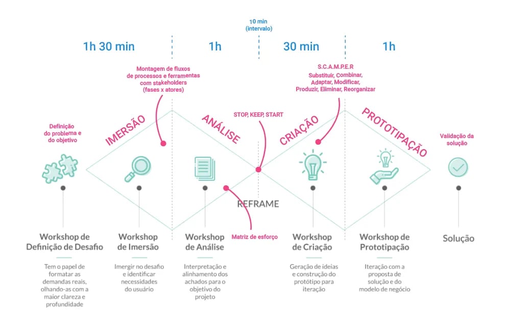 Como acontece em toda empresa de tecnologia, o tempo é um fator crucial para executar qualquer tipo de atividade, portanto adaptei o processo e todas as suas dinâmicas para serem feitas durante o período de 4h.
